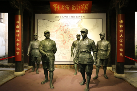 长兴,星罗棋布着18处新四军苏浙军区旧址建筑,是江南抗战时期保存最完整、规模最大的革命旧址群,被人们誉为“江南小延安”。长兴新四军纪念馆位于苍松翠竹掩映的长兴县煤山镇温塘村,地处苏浙皖三省交界处,三面环山,地势险要,易守难攻,是抗日战争后期新四军苏浙军区的指挥中心。如今的新四军苏浙军区纪念馆所在处,是当时的一纵队司令部。庭院西侧,安放着粟裕将军的骨灰。这是他的遗愿:把部分骨灰敬撒于生前战斗过的地方,继续守望一方土地。馆内庄严肃穆,一幅幅历史图片和一件件历经沧桑的军用品,安静地向人们述说着曾经的烽火战事。