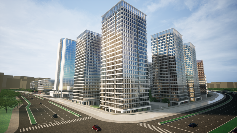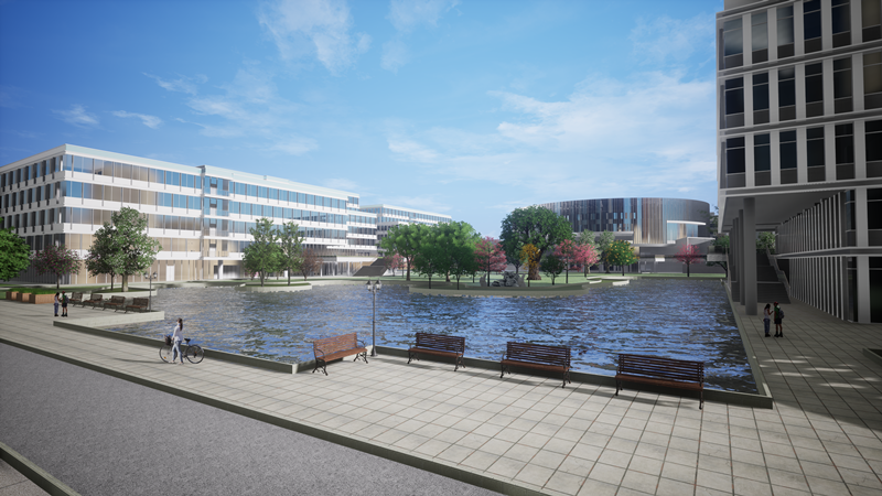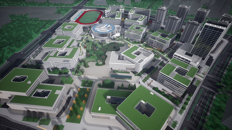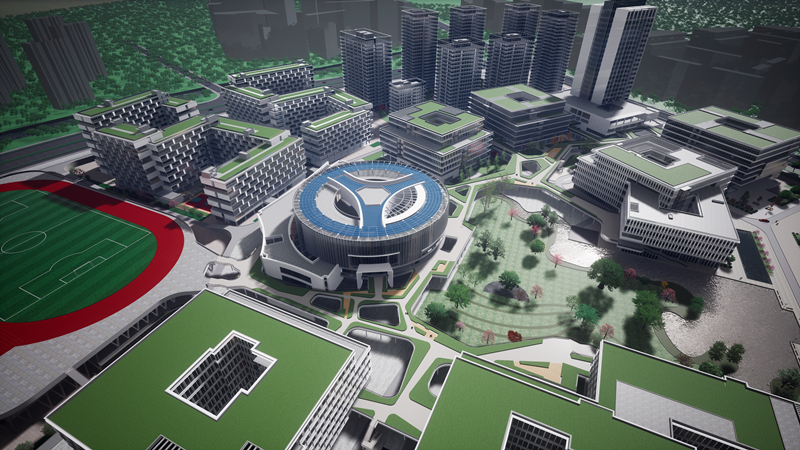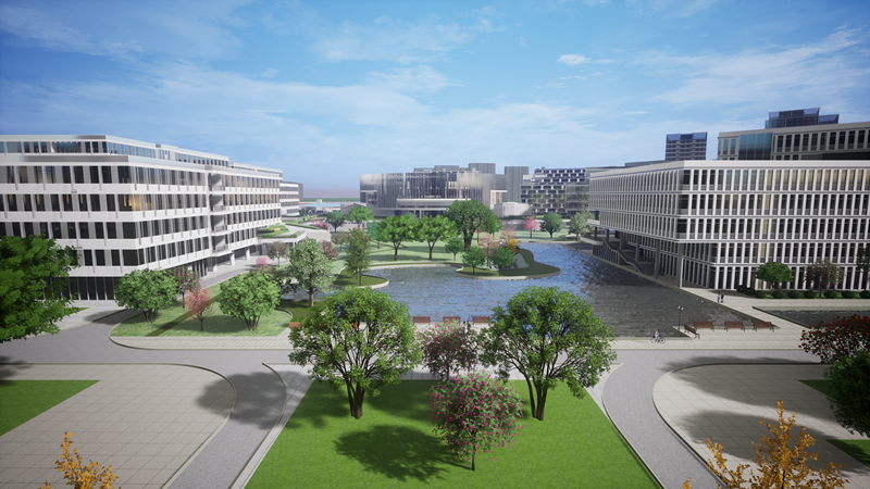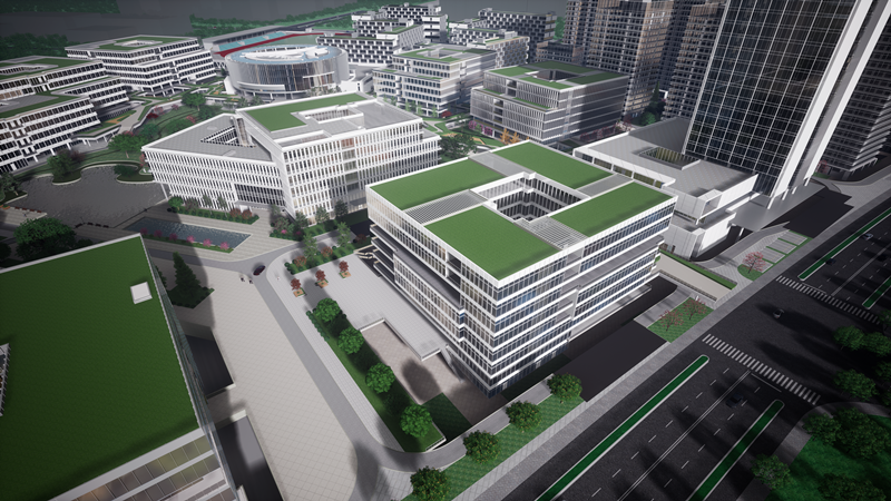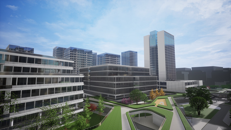 项目总用地面积 25.65 万㎡(约 385 亩),总建筑面积 71.6044 万㎡,其中地上建筑面积 64.1082 万㎡,地下建筑面积 7.4962万㎡;项目由科研办公、科研配套、商业、酒店、抬高车库、地下室等组成。