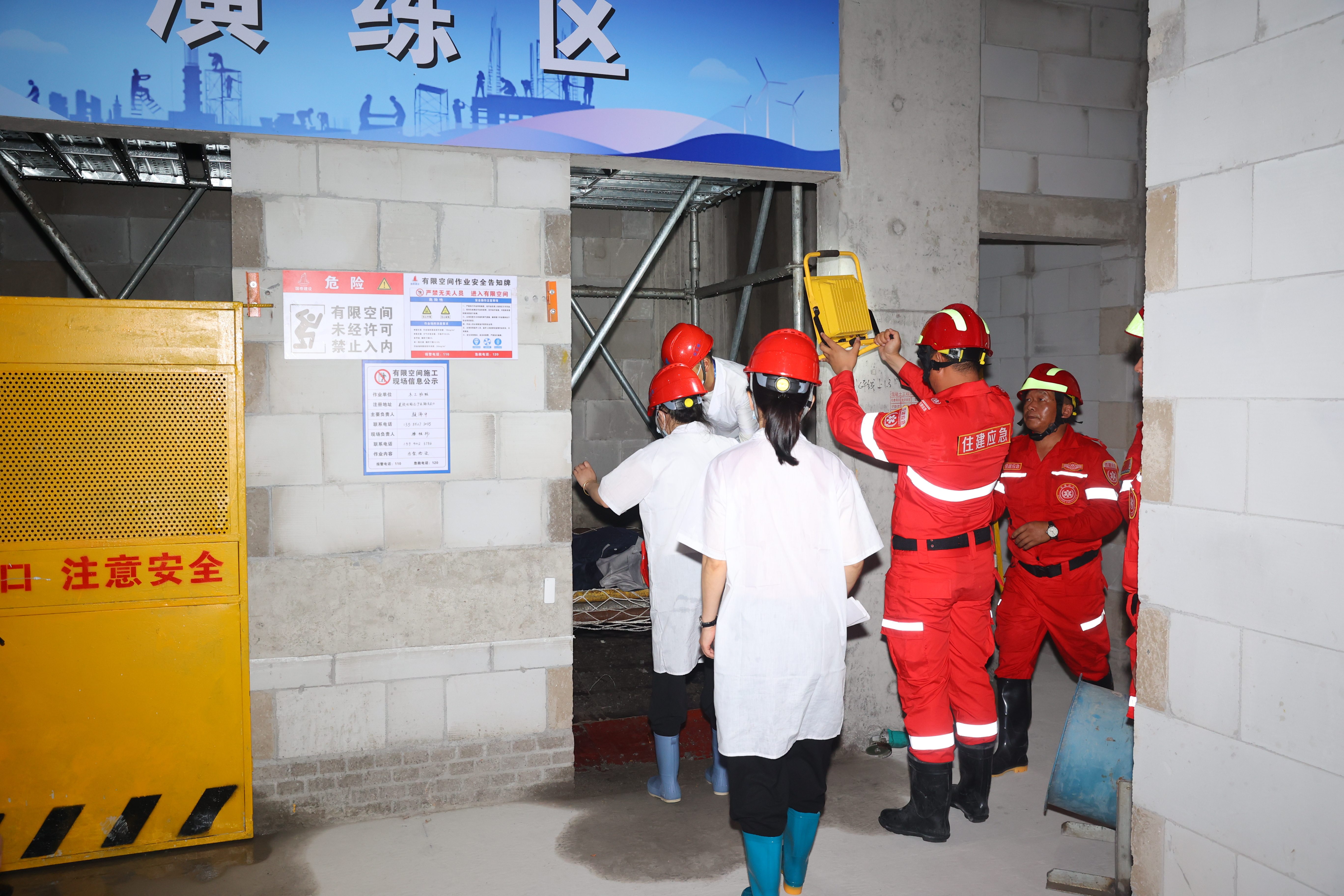 实战演练“砺精兵”,应急能力大检验:围绕活动主题,为进一步压实安全生产主体责任,切实筑牢施工安全防线,现场开展了高处坠落、有限空间应急救援演练。模拟电梯井作业人员高处坠落受困的场景,从险情报告、应急响应、救援处置到医疗救护,全流程实战化演练。